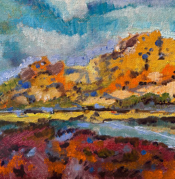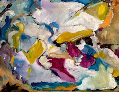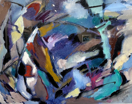 Looking to fo fill up new time as her last moved out, she walked into a "Reflections" painting group at the Arts on the Lake in Kent Lakes, NY and met Alex Shundi. It was he who encouraged her to try new avenues and experimentation in painting. With his encouragement, Ms. Frake discovered "Abstract" and developed a whole new approach and look to her work.